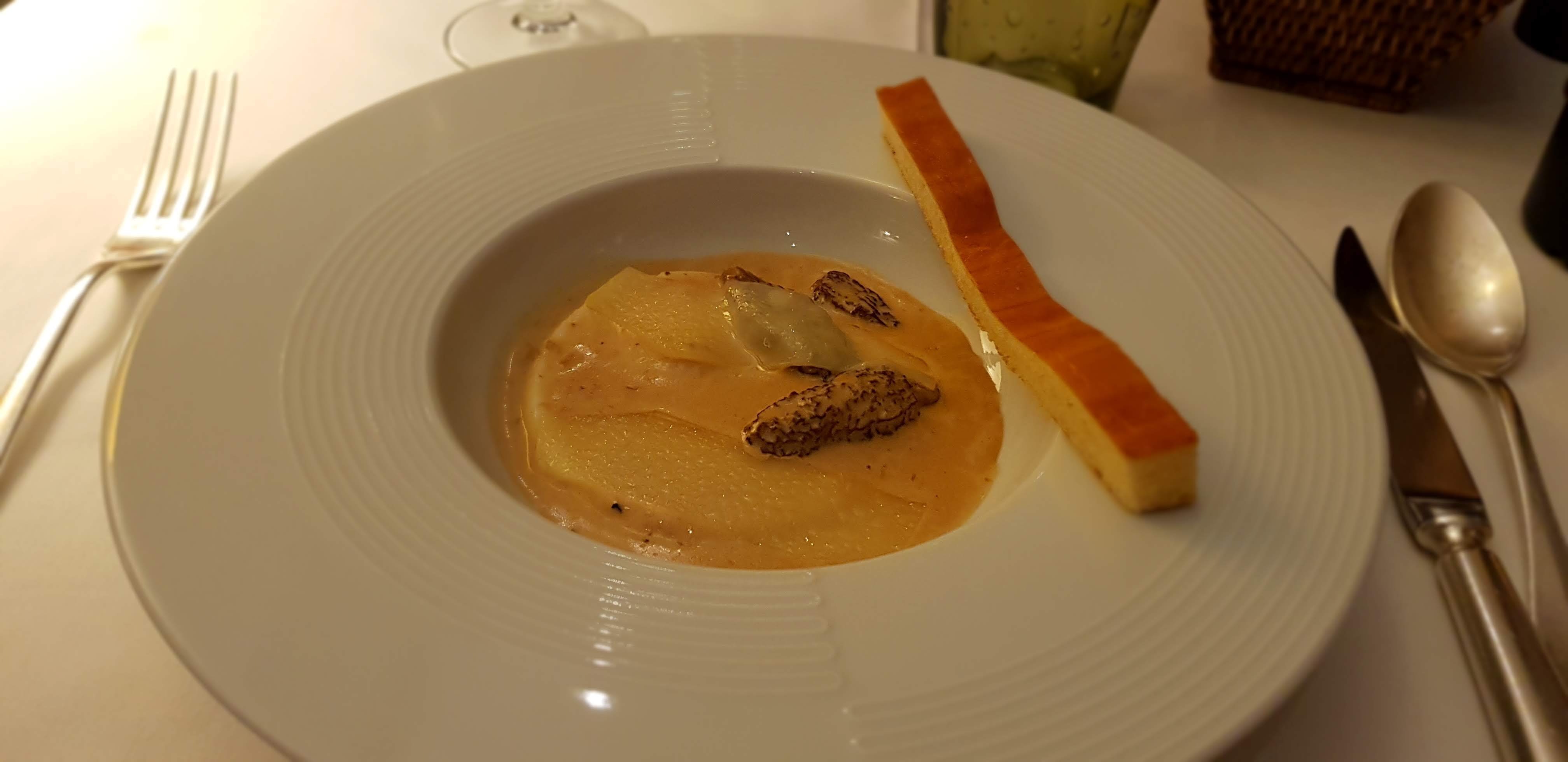 Un accueil chaleureux (même avec une SmartBox, ce qui n'est pas le cas partout). Un succulent repas (menu épicurien), avec de la truffe dans pratiquement tous les plats. Un service attentionné tout en sachant rester discret. Bravo au jeune chef pour ses plats à la fois simples et très raffinés. Nous y retournerons avec grand plaisir en journée afin de profiter du paysage.