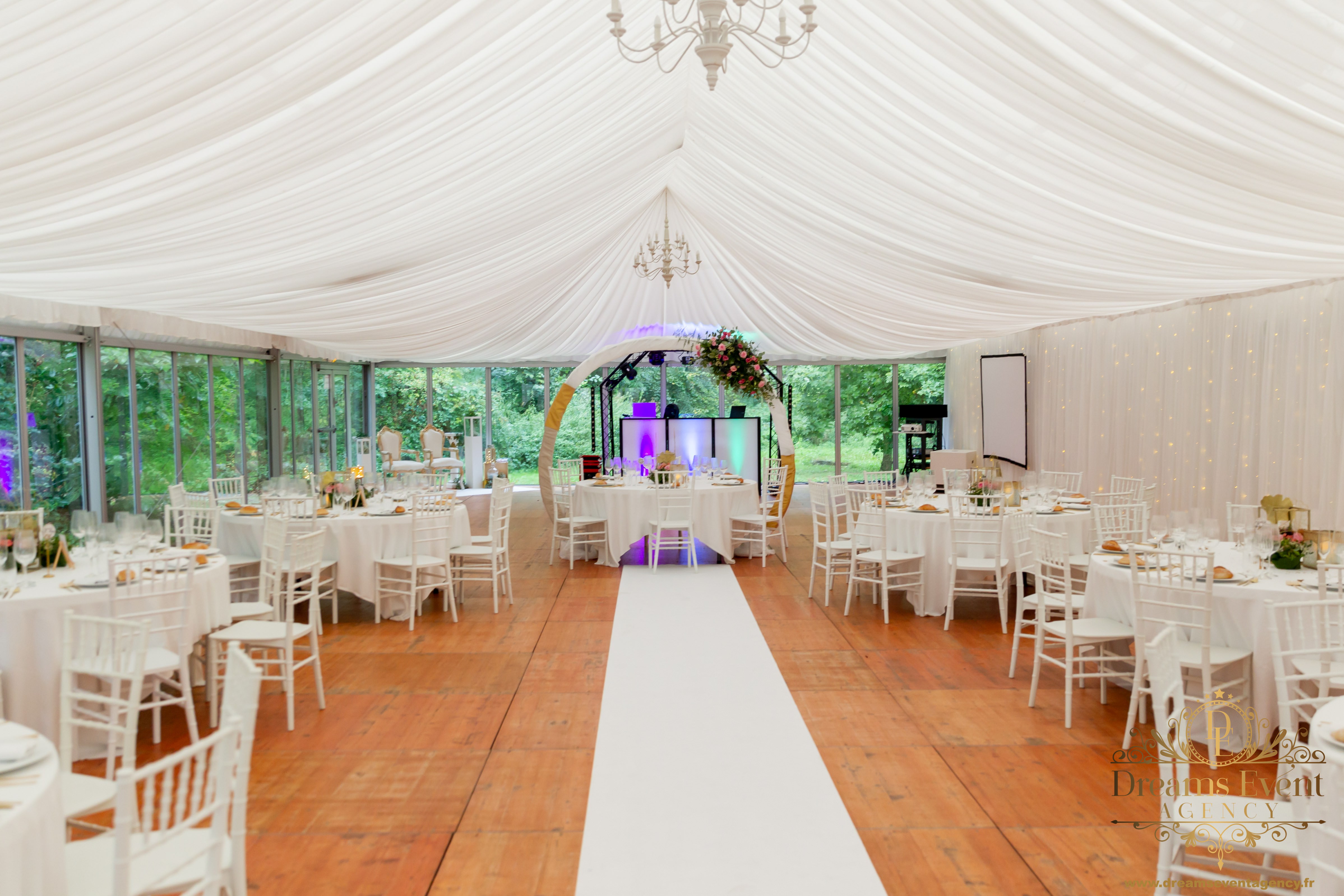 Lieu parfait pour un anniversaire ou un mariage. Chapiteau en drappé avec de très jolis lustres et climatisé. Un grand parc arboré avec une piscine.