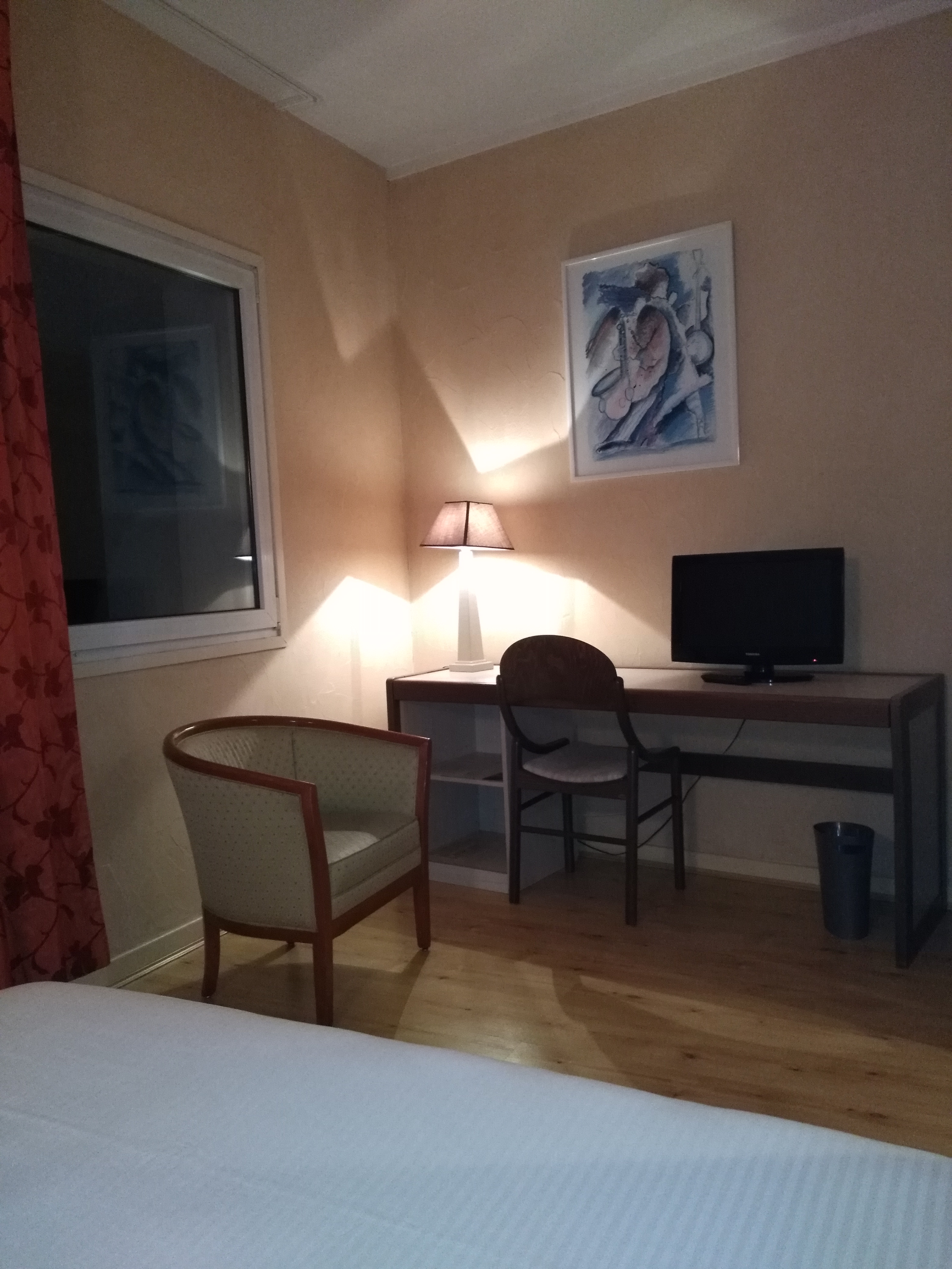 Personnel sympathique, mais les chambres mériteraient une mise à jour. Robinet qui bouge, plan du lavabo tâché, manque clairement de prises 220v, au moins une au niveau de la tête de lit ne serait pas du luxe. Au niveau du bureau obligé de débrancher la télé pout avoir une prise pour le pc ou le portable (en gardant la lampe mais faut pas avoir à brancher autre chose). Déco passée. Restau cher pour pas grand chose dans l'assiette. Autant ressortir vers le centre ville ou dans les zones commerciales. Je n'étais pas venu depuis 4 ans mais ça n'a pas évolué. Adresse à garder quand le reste est complet.