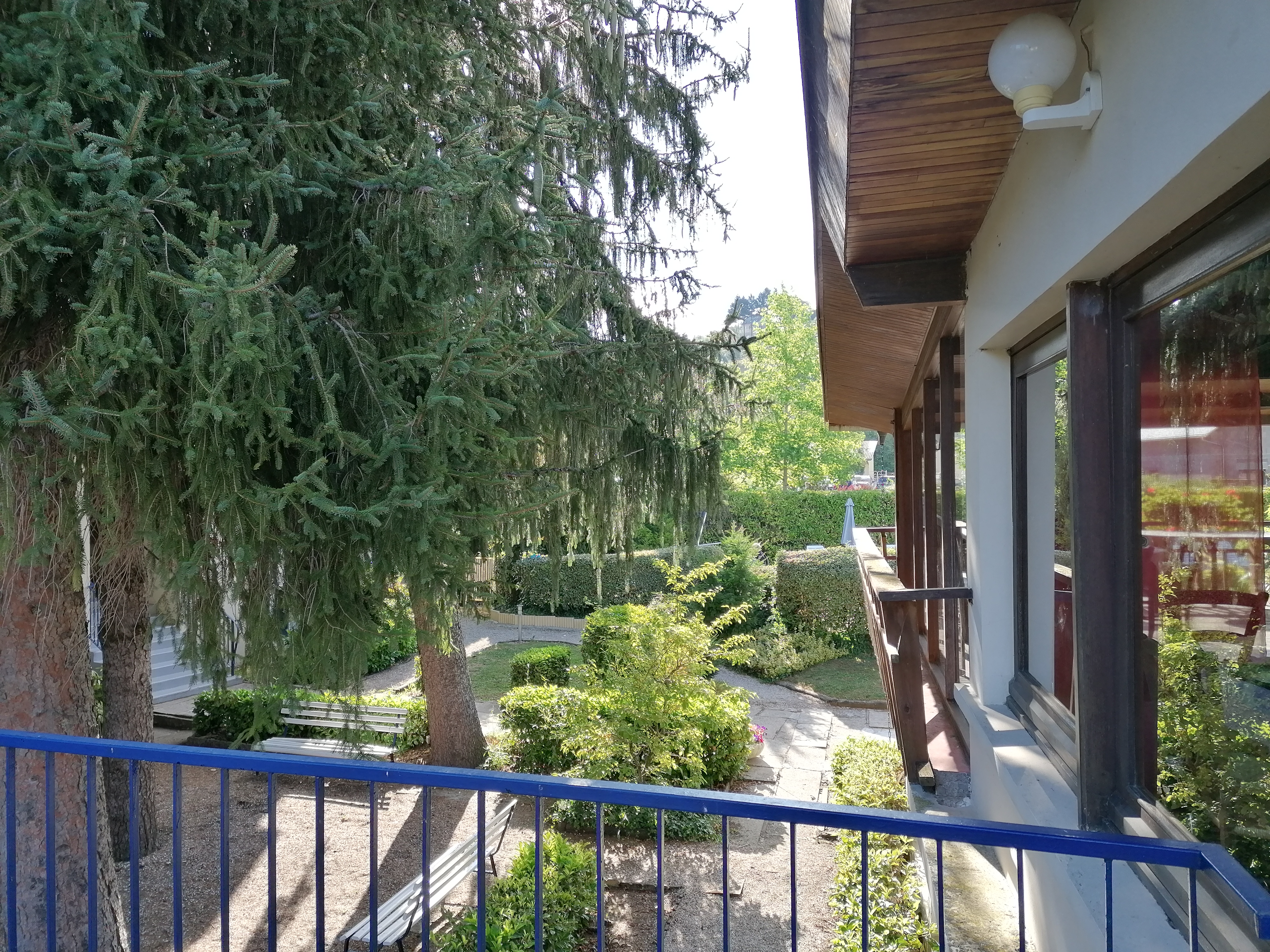 Un très agréable point de vue de la chambre. Un accueil sympa. Bien qu'une déco , on va dire classique ... L'hôtel est très propre et donc bien tenu et reposant de par son cadre. Une petite piscine bien venue quand il fait chaud . Point faible , le petit déjeuner , mais c'était en fin de confinement , et ils ont dû s'adapter en remplaçant le buffet à volonté par le service à l'assiette , du coup , un peu restrictif à mon goût alors que le prix reste le même ... Même si le café est à volonté. Par contre la restauration est de qualité et nous nous sommes régalés . C'est un endroit très touristique avec de belles promenades à faire à pied , et à proximité avec peu de route , donc l'hôtel est un bon relais pour une pause découverte ou repos ! Je n'ai pas essayé les chambres ne donnant pas sur le parc. Bonne visite à vous ...