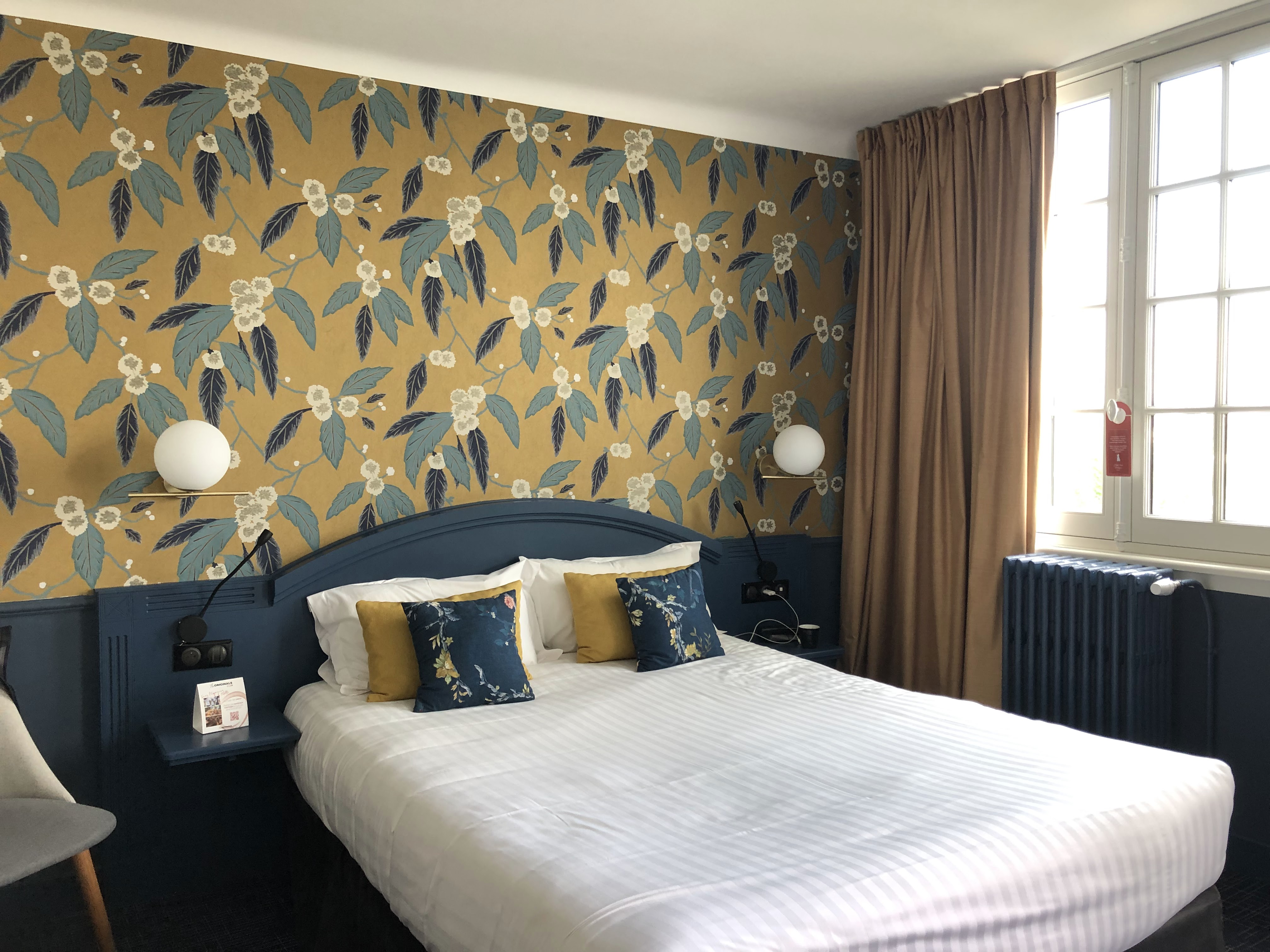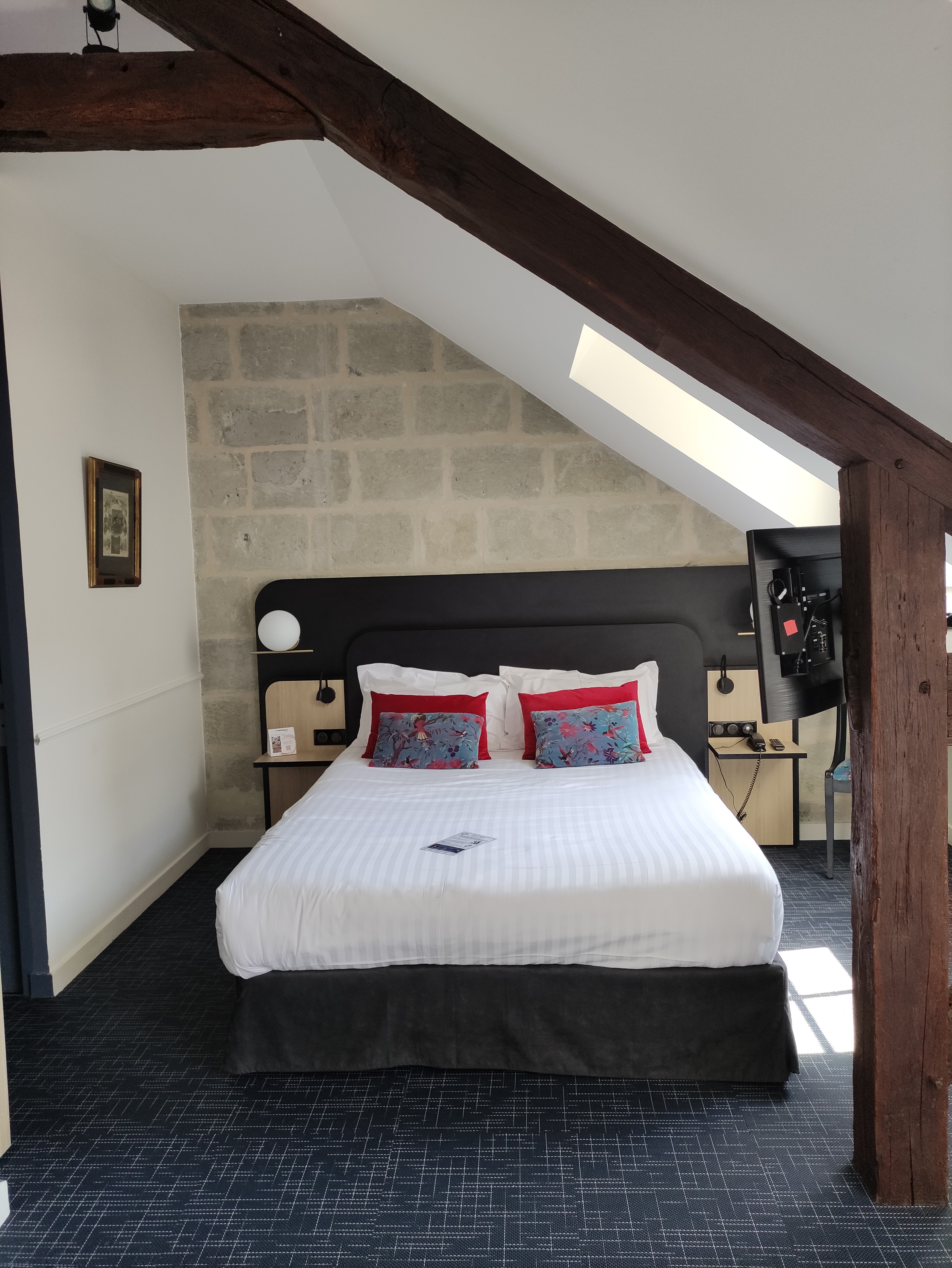 Nous avions pris la chambre de 26 M2 , nous y étions bien ! La literie est royale ! Nous y avons été super bien accueillis avec notre chien ! Confort , pas de bruit , pas de lumière , une nuit extra ! Le petit déjeuner vaut le détour ! Un régal , frais (nous pouvons même pressé notre jus d'orange !) Vraiment un lieu que nous recommandons ! Le cadre est magnifique, au pied de la Loire et du château , à 5 minutes à pied du centre historique. La cour aussi de l'hôtel est bien sympathique !