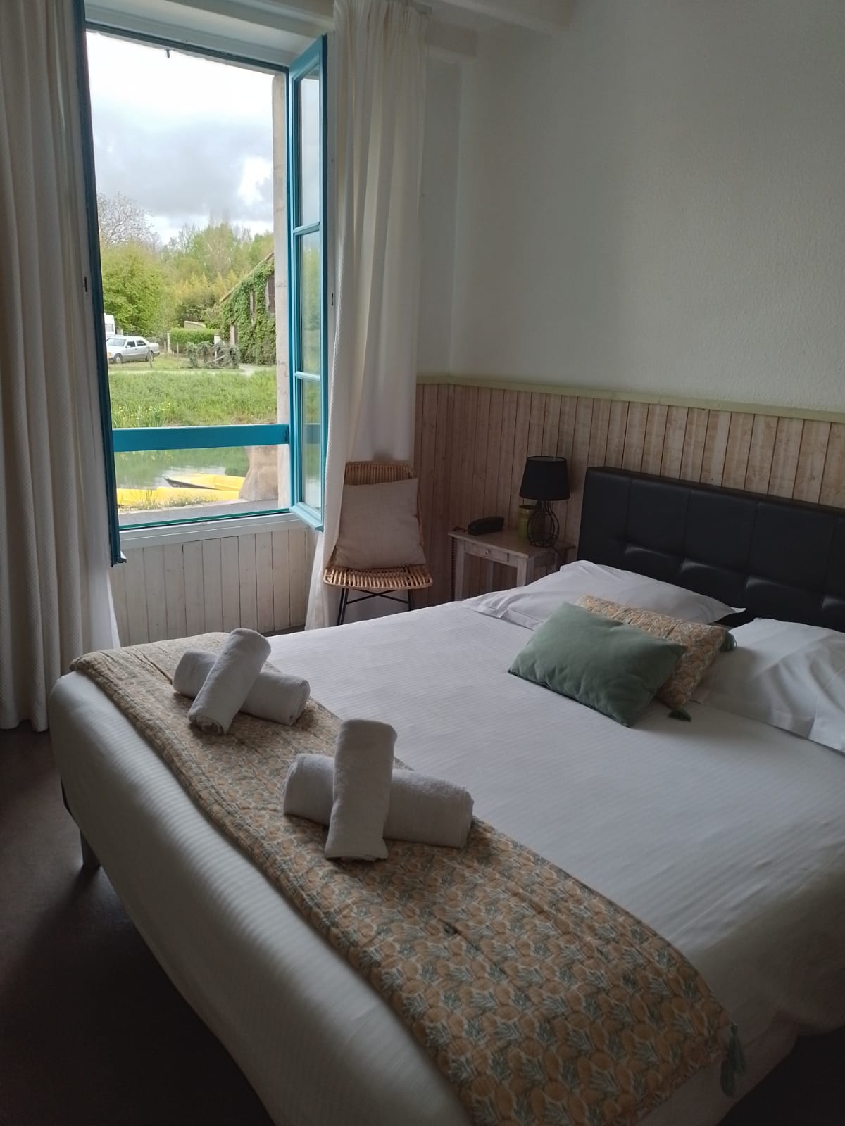 Un hotel comme on les aime... Dès l'accueil jusqu'au départ nous avons été conquis ! On y retrouve tout ce qu'il manque aux hôtels des grandes chaînes et qui motive à faire qq km de plus (à peine finalement) pour profiter d'une vraie halte dépaysante : atypique par sa disposition (en 2 bâtiments pitoresques) et sa situation (au pied du canal et des embarcadères pour de jolies promenades en barques), quelques places de stationnement au pas de la porte et parking communal à 2min à pieds, accueil souriant et familial des jeunes propriétaires, chambre décorée avec goût, literie nickel, salle de bain bien équipée, préparations maison au petit dej (le cake aux pistaches déchire !!), restaurants sympas à 2 pas... Tout ce qu'il faut pour profiter en 1 nuit ou en plusieurs jours de cette magnifique Venise verte. C'est certain on reviendra !