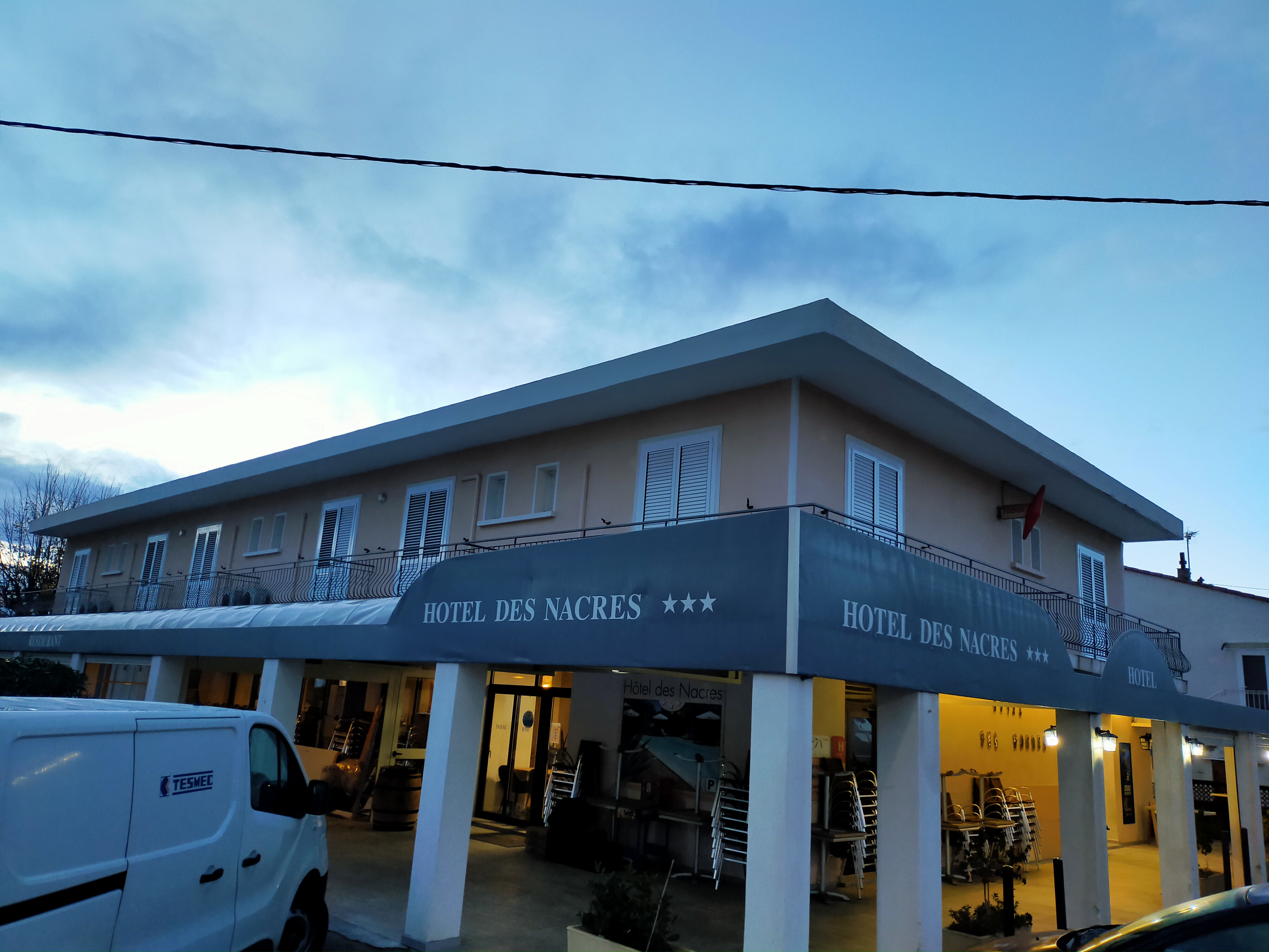 Nous avons fait étape à l'hôtel des Nacres avant de rejoindre le sud. C'est un hôtel familial avec un personnel gentil, bienveillant, à l'écoute de ses hôtes. Il dispose d'une piscine agréable et de chambres confortables avec climatisation L'hôtel est situé à côté d'une route mais cela n'est pas du tout gênant , rassurez-vous.. Nous avons dîner le soir, les prix sont très raisonnables et les pizzas excellentes. Le petit déjeuner copieux. Possibilité de prendre juste un café et un croissant si vous ne souhaitez pas prendre le buffet. Je peux que vous conseiller cet établissement ! Bonnes vacances 😎
