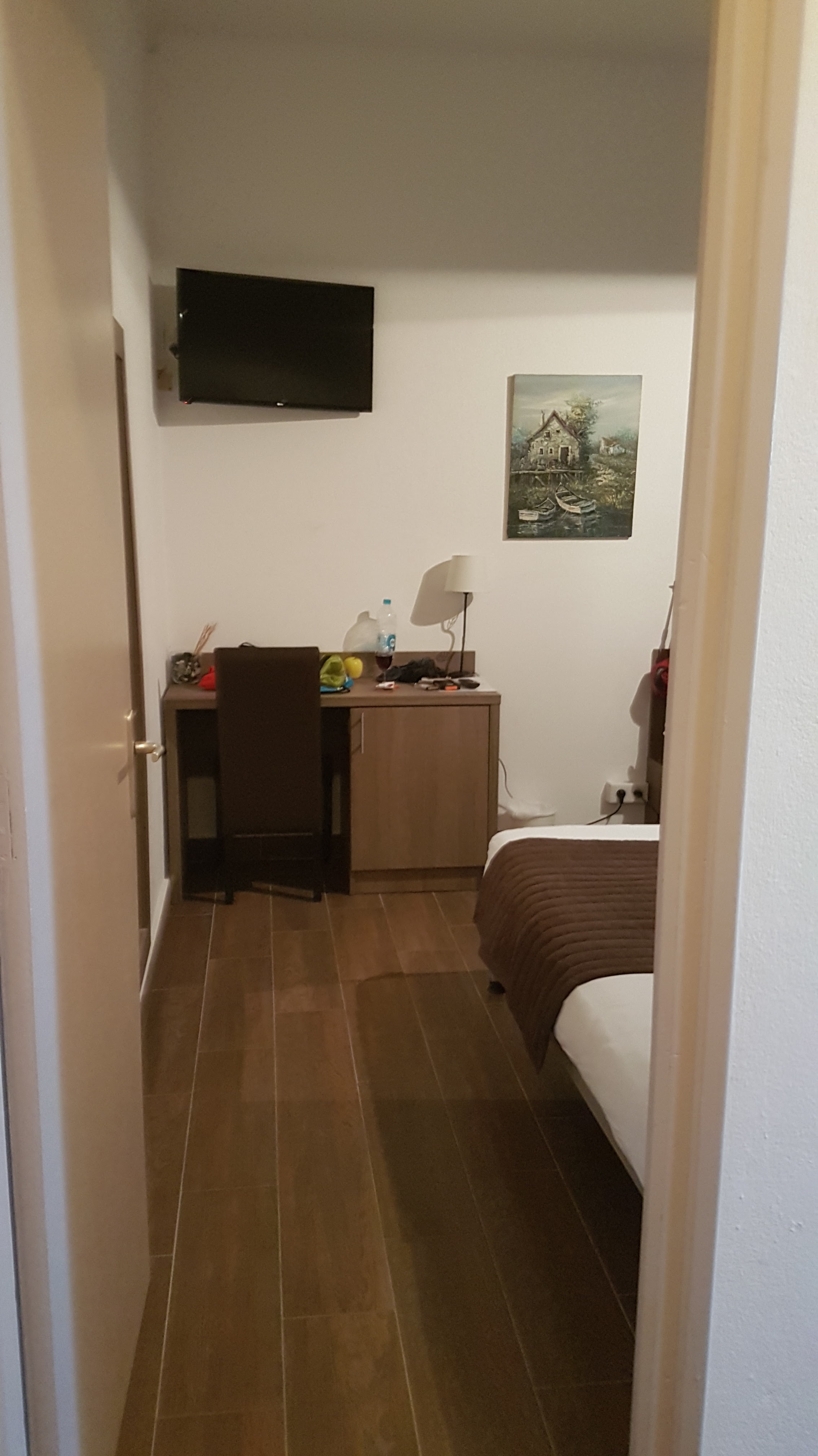 C'est ok pour un hôtel de passage mais pas pour y séjourner plusieurs jours. Le personnel est certes sympathique mais ils courent dans tous les sens. Ils sont au bar, à l'hôtel, ici et là ! Ils vous posent des questions mais sans réellement écouter la réponse. La chambre manque de décoration, c'est froid ! La literie est bonne et le couloir fait un peu prison (changer les lumières, les cadres cassés et les illustrations, suggestion photo du massif de Bavella par exemple). C'est la salle de bain qui craint (trou dans le plafond, accès tuyauterie baignoire visible, pas de mélangeur et lumière blafarde). Il serait aussi interessant de bien séparer l'accès hôtel/bar