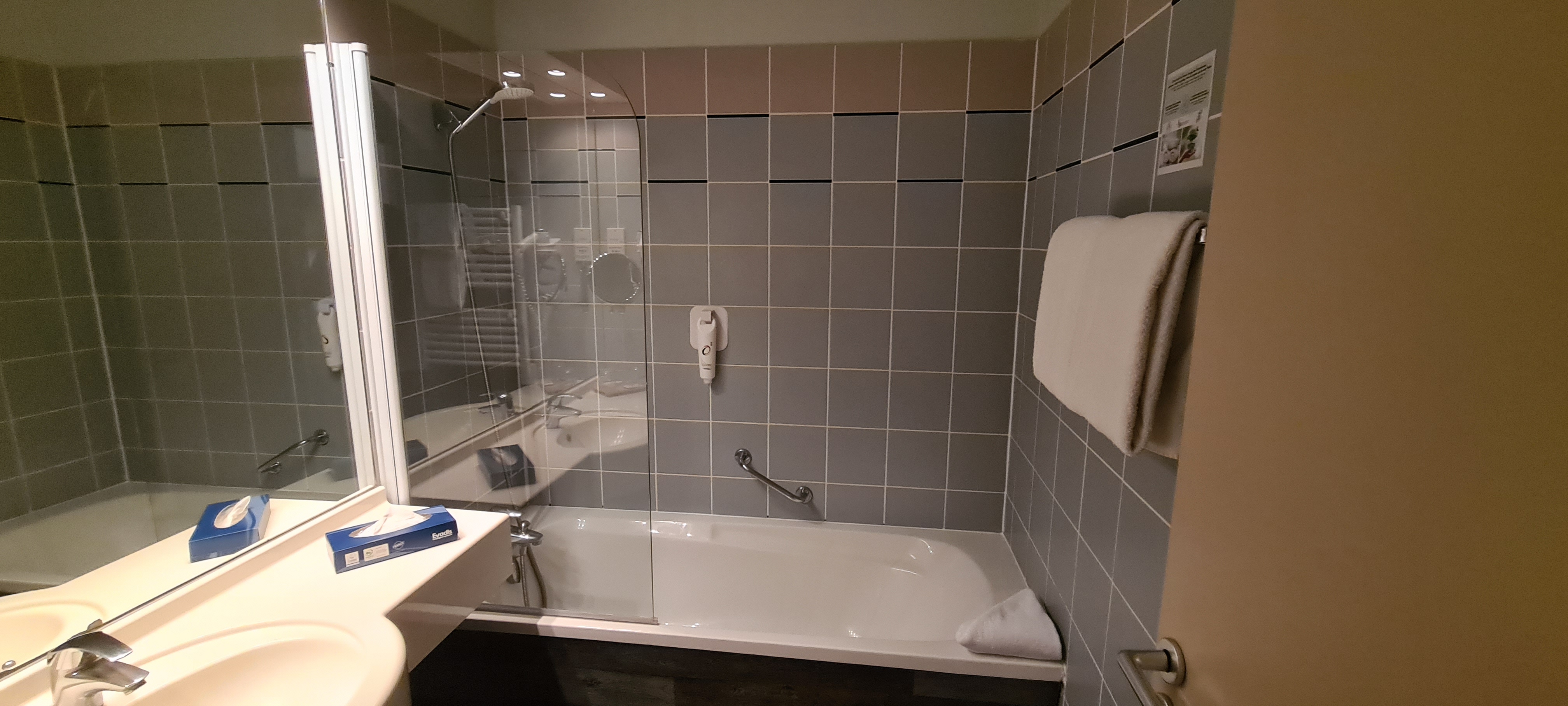 Hôtel de qualité, chambre très spacieuse avec tout les équipements nécessaires. La vue et la piscine chauffée est top. Pour un week-end détente je recommande. Le petit-déjeuner et les repas sont assez onéreux.