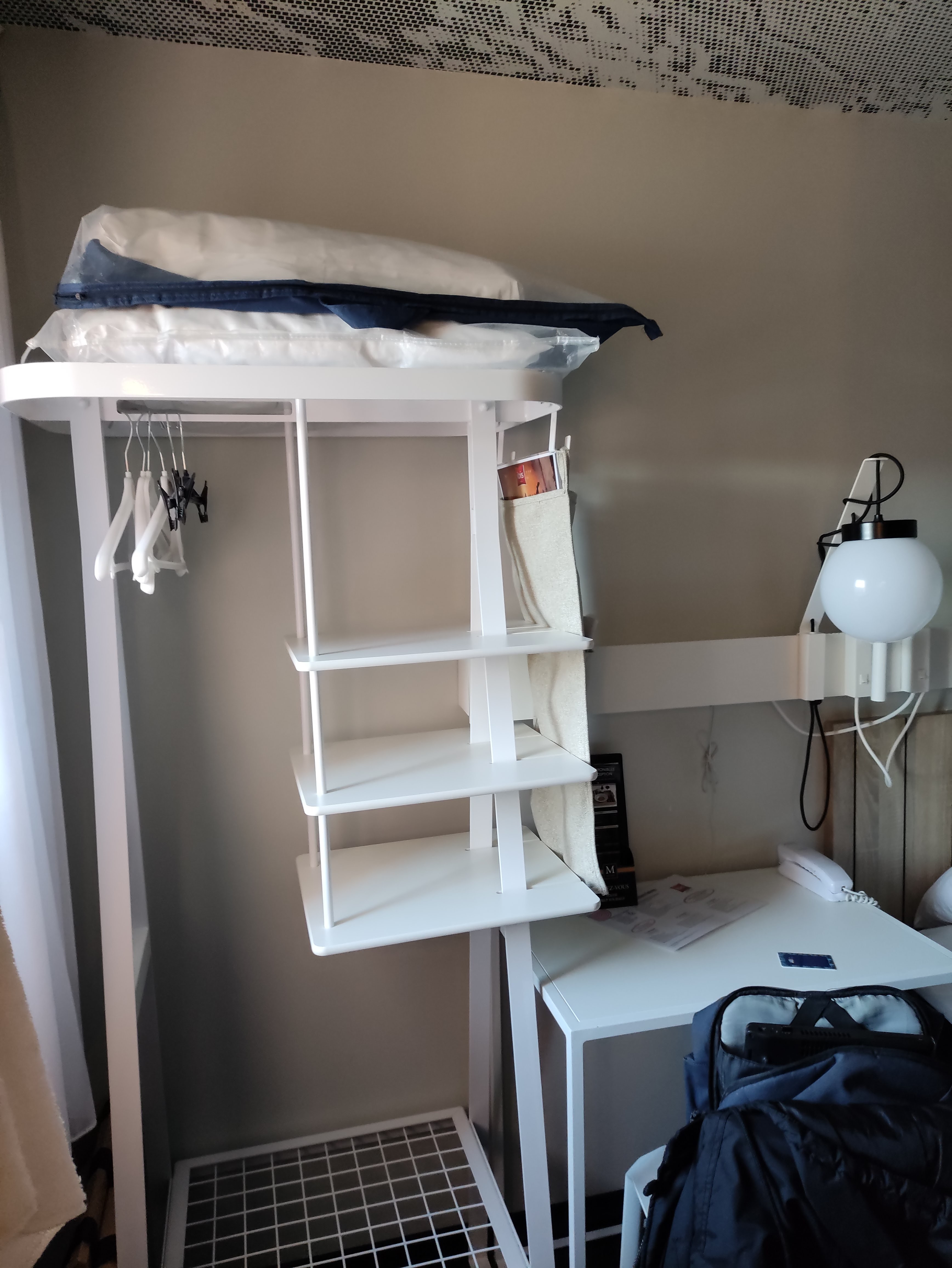 Chambre très petite sans aucun rangement, même pas une petite table ou poser la télécommande ou son portable. Peut mieux faire