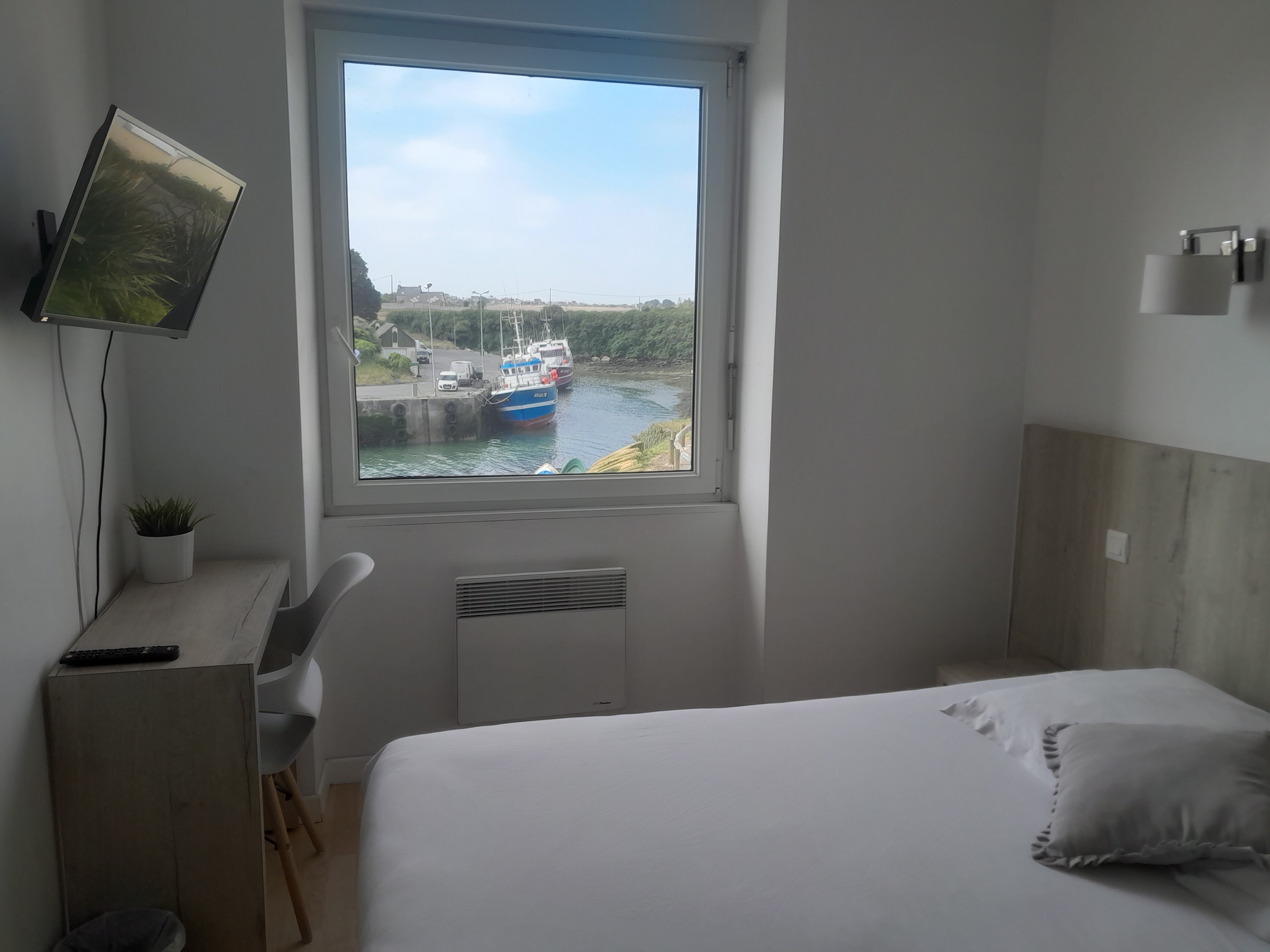 Hotel que j aime bien ! Très bien situé sur un super beaux petit port. Des chambres ont étaient rénovés grandeur correct. Le restaurant est très fruits de mer et poissons les gens ont laire d aimer. Moi je suis carnivore et les plats sont corrects. Le plus l l'ambiance serveuse et gérant sympathiques. Les gens du Finistère Nord sont comme ils sont et defois sans prises de tête !
