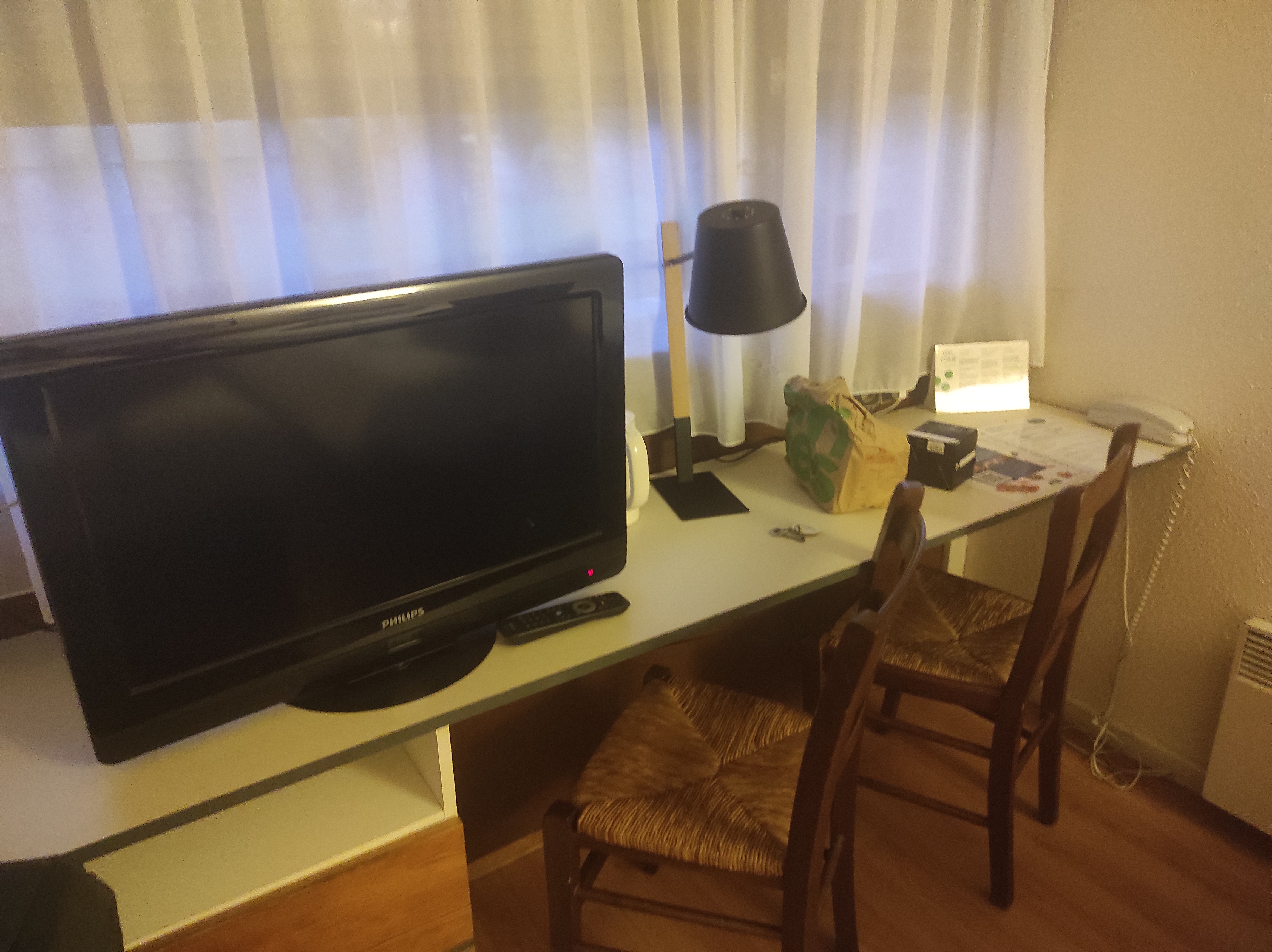Posté le 07/07/2021 à 21:38"Hôtel vieillissant (prises Minitel, c'est pour dire), chambres non fumeur avec cendrier devant la fenêtre...). suffisant pour une nuit de passage."