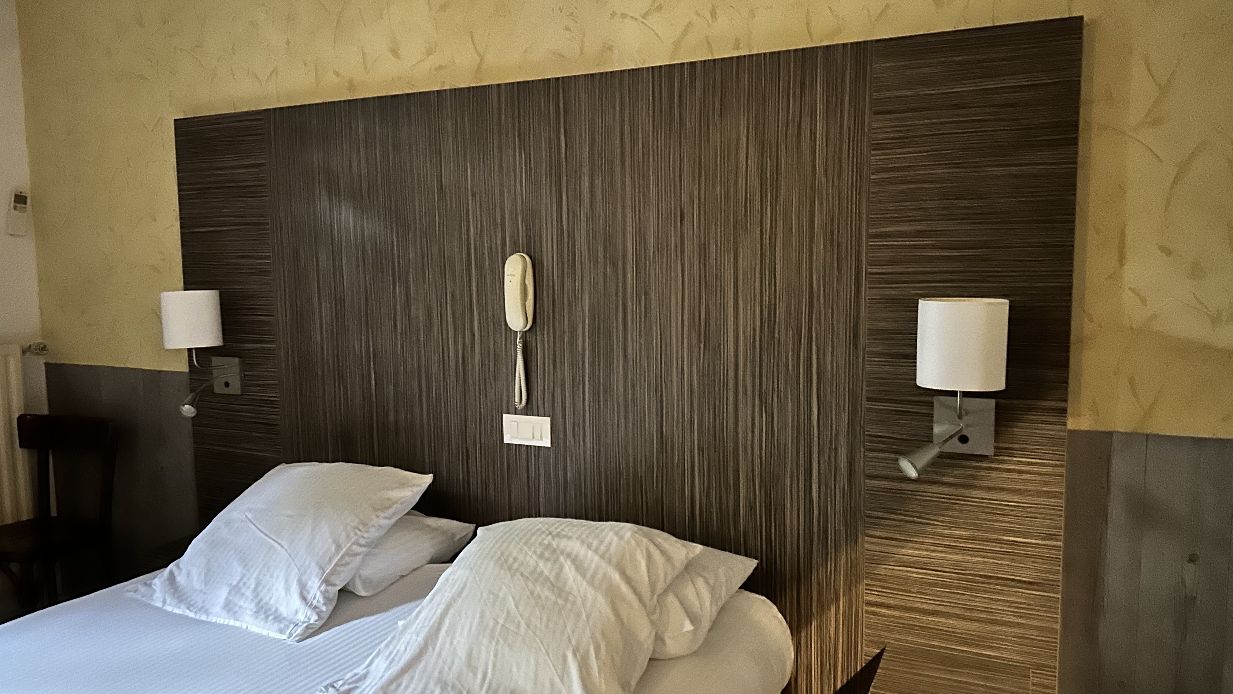 J’ai séjourné deux nuit au mois de juillet. Les murs de la chambres sont très fins, je pouvais entendre la télé et les discussions des personnes de la chambre à côté, les volets en bois ne se fermaient pas complètement, la salle de bain à une décoration très ancienne avec des champignons dans le bac à douche ainsi que le pommeau de douche très entartré, il n’y a qu’une seule et unique prise électrique de libre dans l’ensemble de la chambre. Je n’ai pas pris le petit déjeuné car très cher. L’hôtel ne mérite pas ses 3 étoiles et est très cher au vu des prestations proposées.