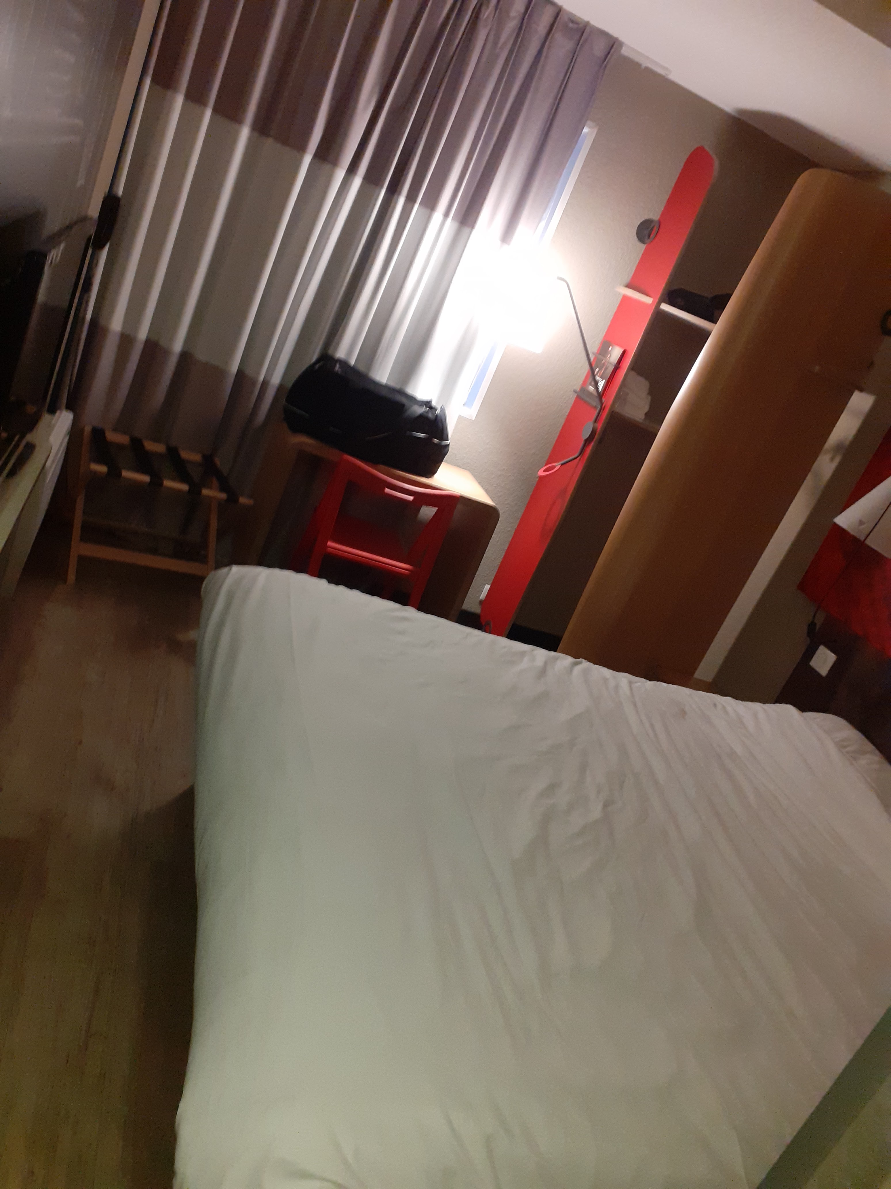 Hôtel mal situé Personnel un peu mièvre et pas du si cool comme le disent d autres avis .(ou alors les gens ne disentpas ce qu ils pensent réellement ) Un peu froid et distant même surtout celle du soir ,avant d avoir un sourire bon courage !! Chambres minuscules et étouffantes et la literie n est pas aussi confortable que ça. Salle de bain riquiqui en gros on peut se brosser les dents tout en étant aux toilettes lol....un régal......!!!! Et cerise sur le gâteau la voie semi express qui passe toute la journée et nuit sous vos fenêtres,pour l autre côté de l hôtel c est une vulgaire zone industrielle bien glauque.😲 Bref pour une nuit ça passe,moi 4 nuits c était beaucoup trop !!!! Au vu des autres ibis découverts partout en France,celui ci n a aucun INTÉRET. Désolée pour la franchise mais vive l honnêteté