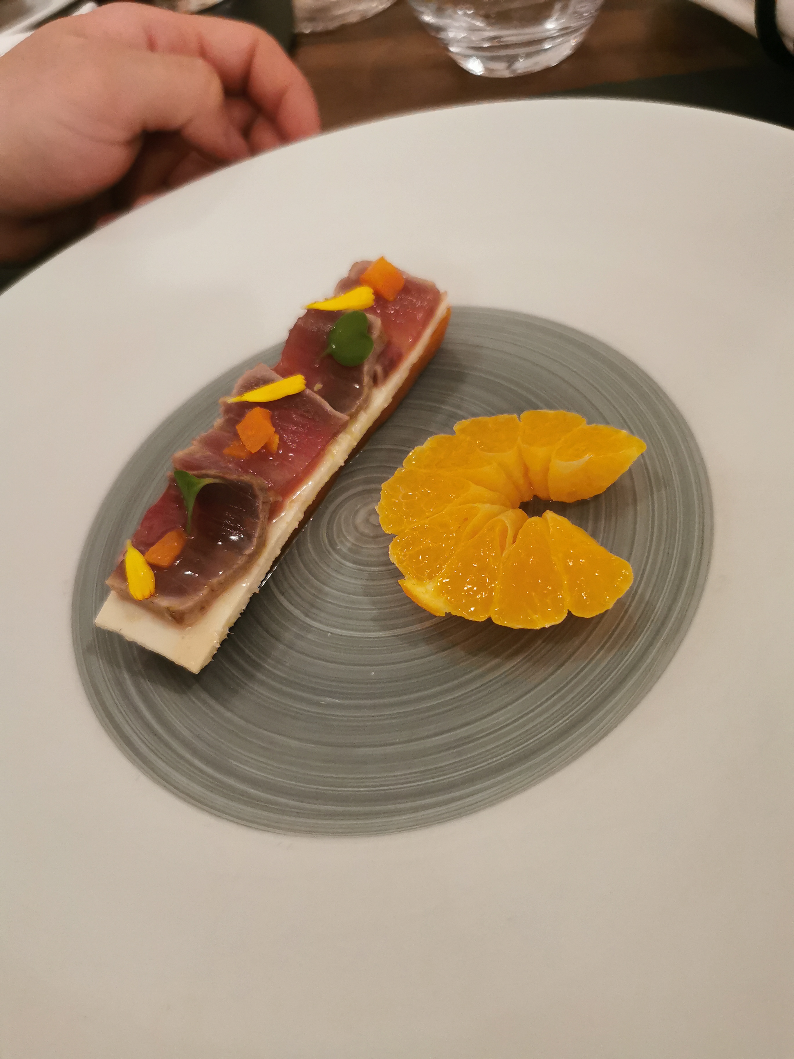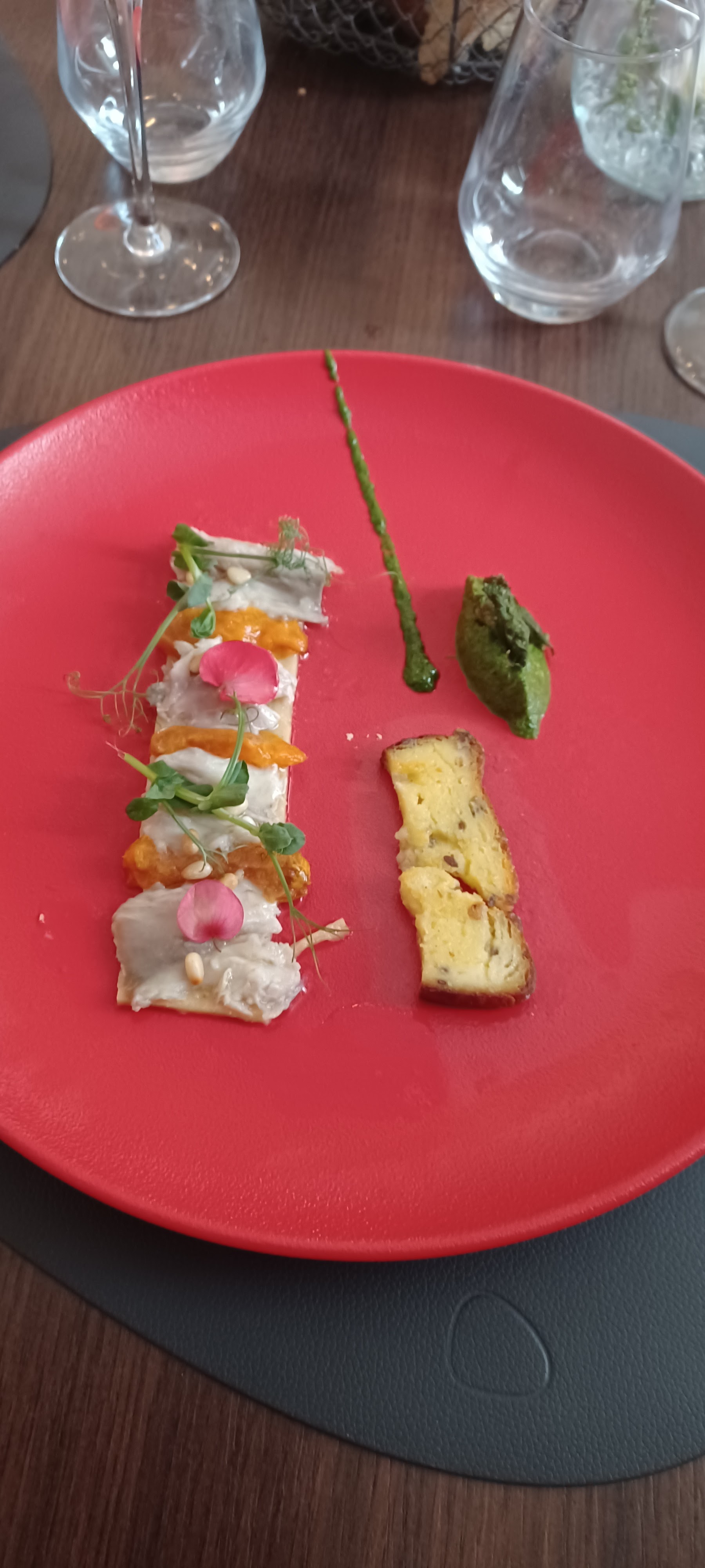 Un régal. Présentations et goûts formidables. De l'art dans les assiettes. Le vin est également un delice au palais. Je recommande vivement. Le plus... une hôtesse d'accueil et de service d'une gentilesse remarquable, pleine d'humour et d'entrain, le tout, accompagnée d'un sourire naturel.