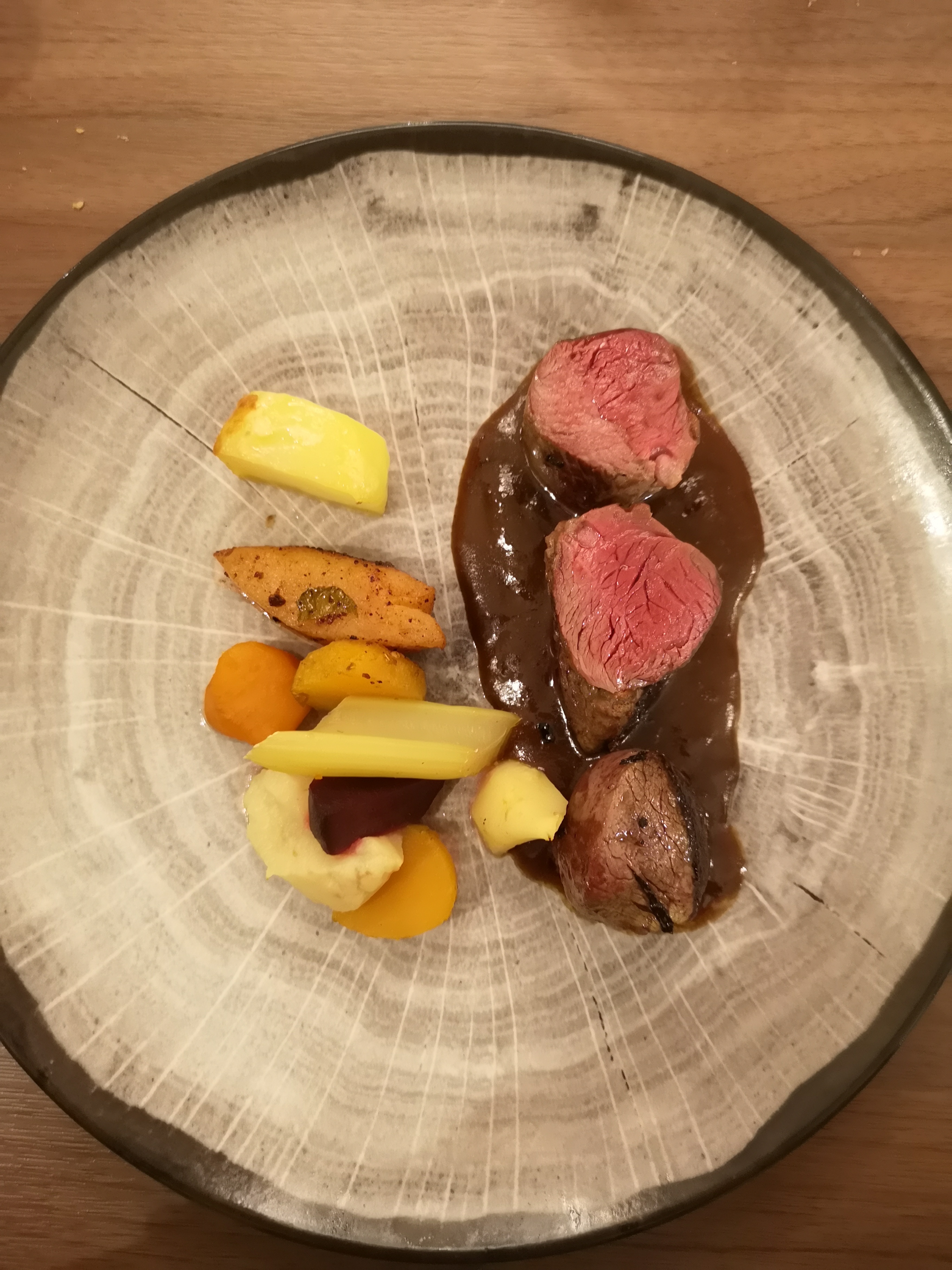 Posté le 24/10/2018 à 04:51"Tout avait pourtant bien commence. L entree etait originale et bonne. Le plat, une piece de boeuf, etait bien executee mais quelconque. L accompagnement etait inexistant: quelques legumes perdus au milieu de l’assiette. Frustrant. Le dessert pourtant simple etait un desartre: mon fondant au chocolat, avait le gout de brûle. Je l ai fait remarquer a la serveuse qui ne s est meme pas excusee. Décevant. Le service, d'ailleurs, parlons en, il etait froid et lent. 37 euros pour un repas mediocre. On se serait cru dans un restaurant branche de la capitale ou l on paie une fortune pour deux radis et un mauvais service. Mon conseil: oubliez la prétention et retournez a une cuisine simple et honnete. Ou demenagez."
