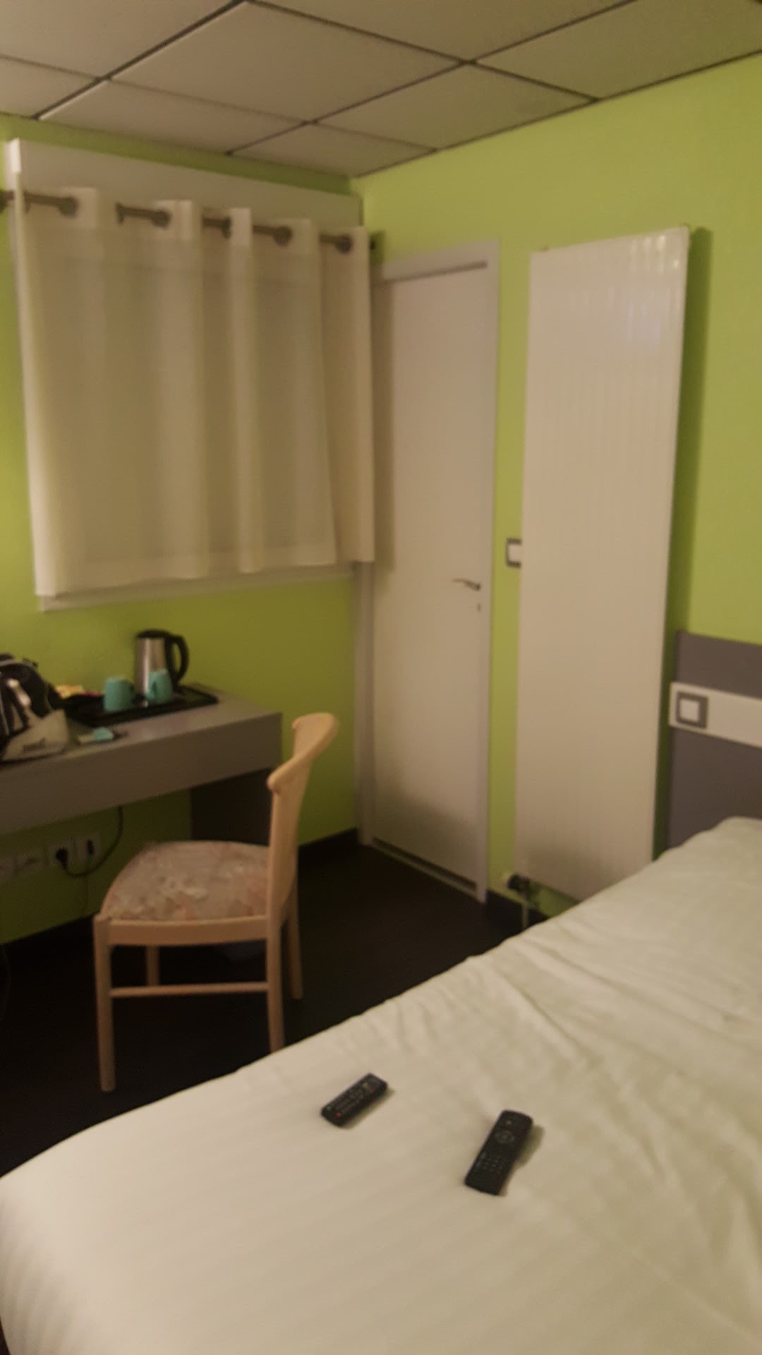 Parking spacieux, dame sympathique derrière la caisse qui m'a demandé si je voulais réchauffer mes plats immédiatement ou plus tard. Je me suis d'abord rafraîchi, puis j'ai commencé à manger, qu'ils ont réchauffé pour moi au micro-ondes. Nous sommes d'abord allés dans la chambre pour prendre une douche, qui était démodée mais fonctionnelle et propre. La chambre est également vétuste mais propre, télé très petite, ce n'est vraiment plus possible en 2019. Pas de prise de téléphone à côté du lit, ce qui n'est pas pratique mais sinon ce n'est pas une pierre d'achoppement. Les lits sont propres mais beaucoup trop petits par rapport aux normes actuelles, je mesure 1,85 donc de taille moyenne, mais mes jambes sont vraiment sorties du lit. Conclusion : personnel sympathique, chambres propres, démodées.