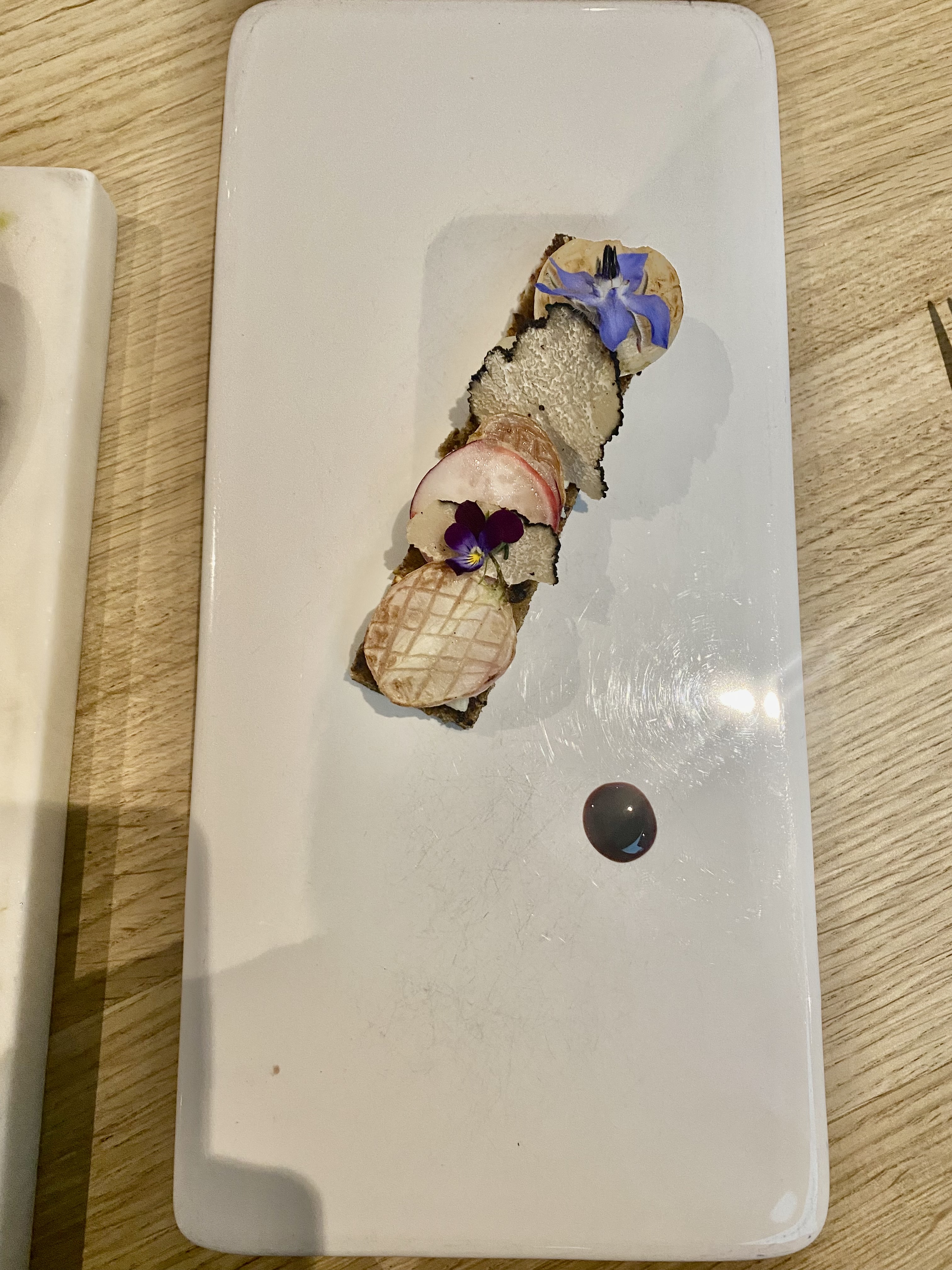 Beau voyage autour de la truffe. Une explosion de saveurs pour la raviole d'échalotes truffée au parmesan et le topinambour en émulsion. Un tableau d'artiste pour la pomme de pain (dessert). Très bons accueil et service