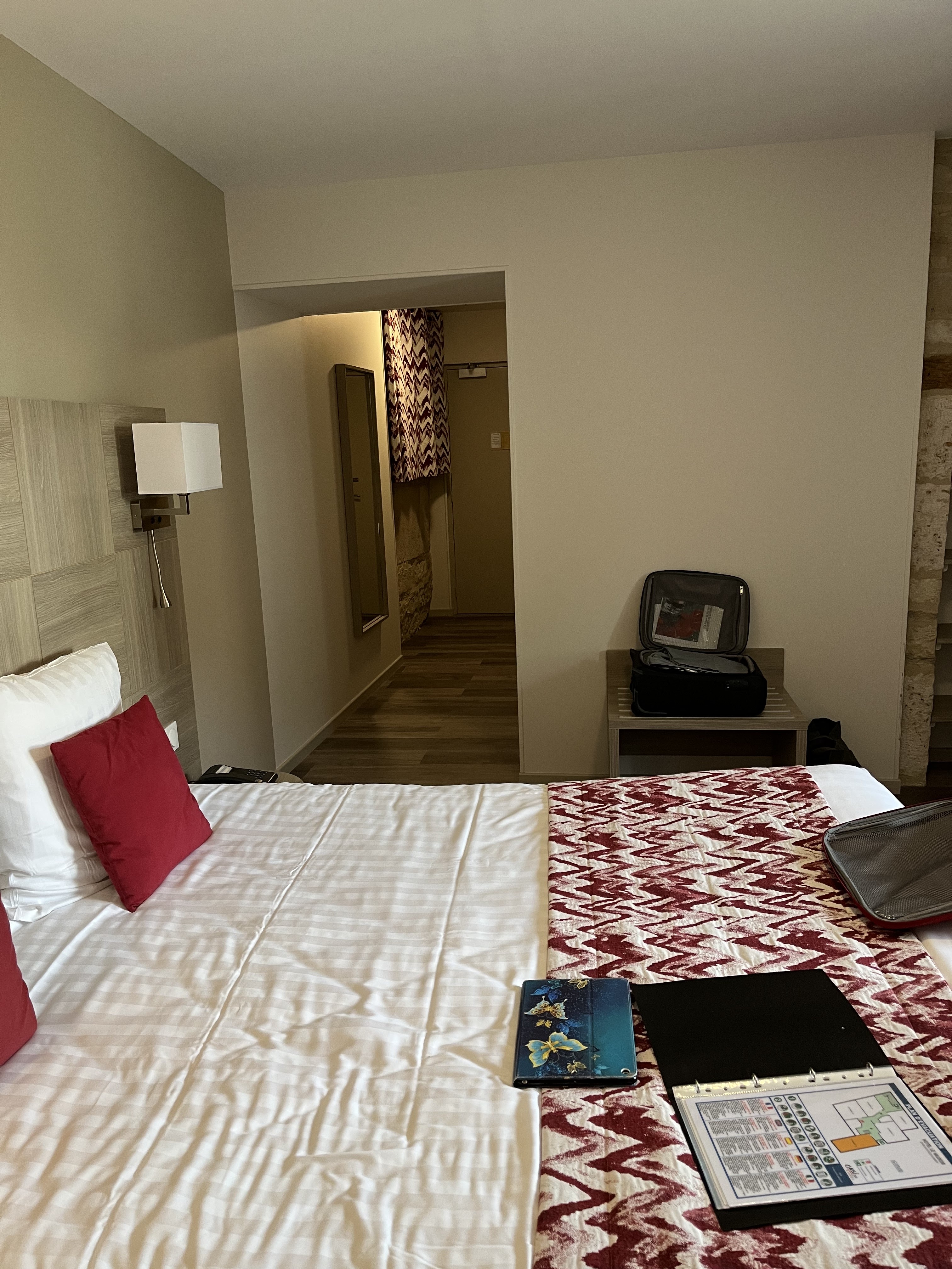 Franchement c'est un hôtel agréable, la chambre est grande et spacieuse avec un air co (bruyant ). Par contre l'heure c'est l'heure 🫨 L'accueil un peu froid . Mais je le recommande quand même!