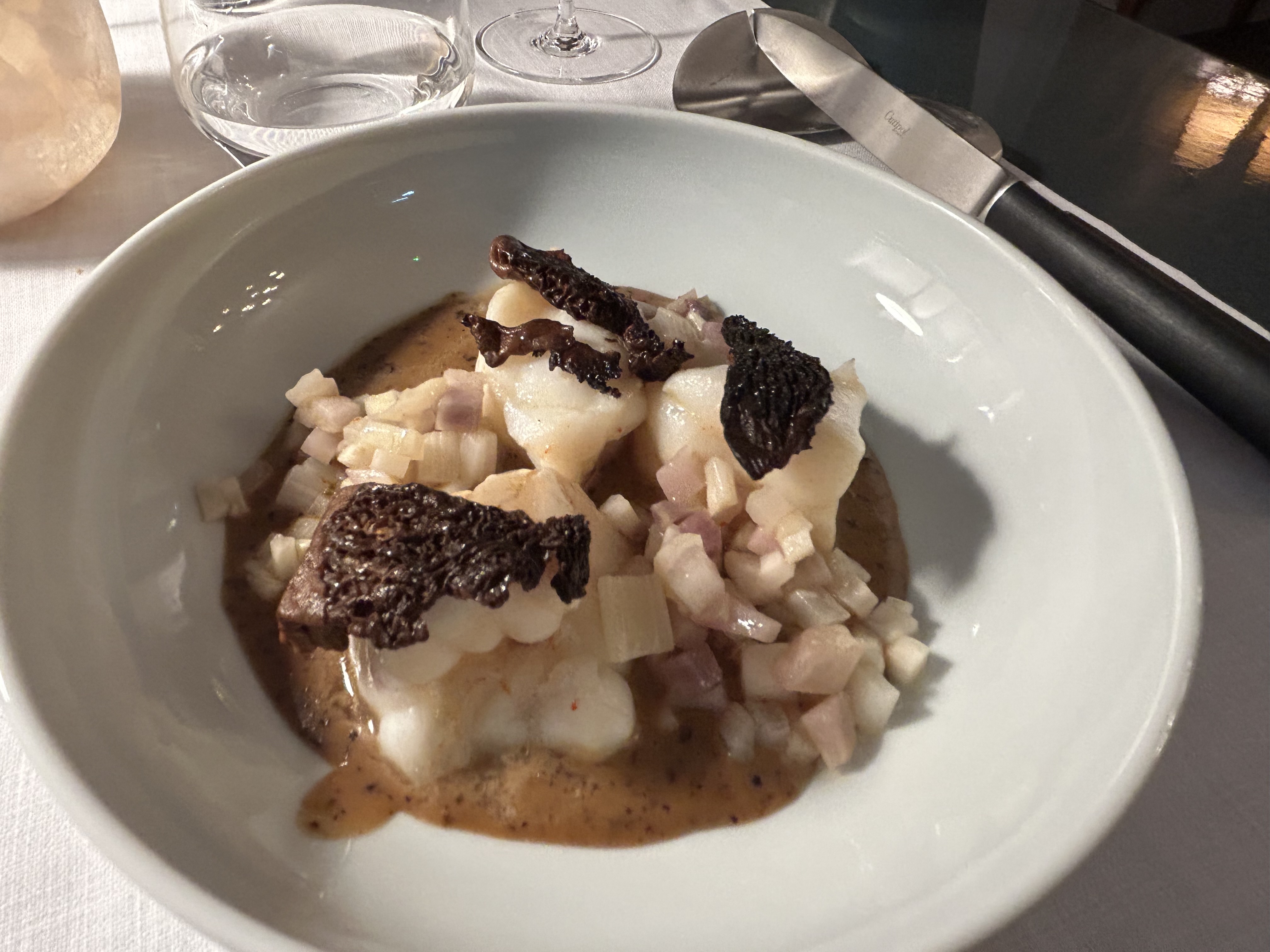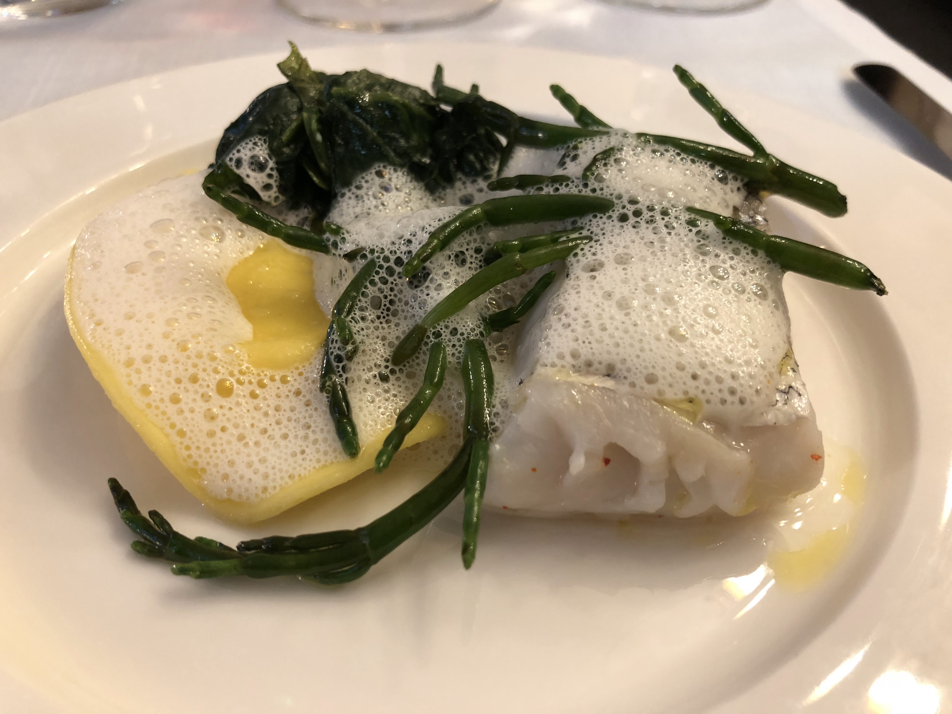 Avant d'arriver, nous ne savions pas si c'était un bon restaurant ou non. Nous l'avons choisi uniquement pour le champagne d'Anselme Selosse que nous avions hâte de tester. Le champagne était à couper le souffle, mais à notre légère surprise, la nourriture était tout aussi bonne ! L'endroit entier est beau et confortable. Dans l’ensemble, ce fut une excellente expérience de dîner.