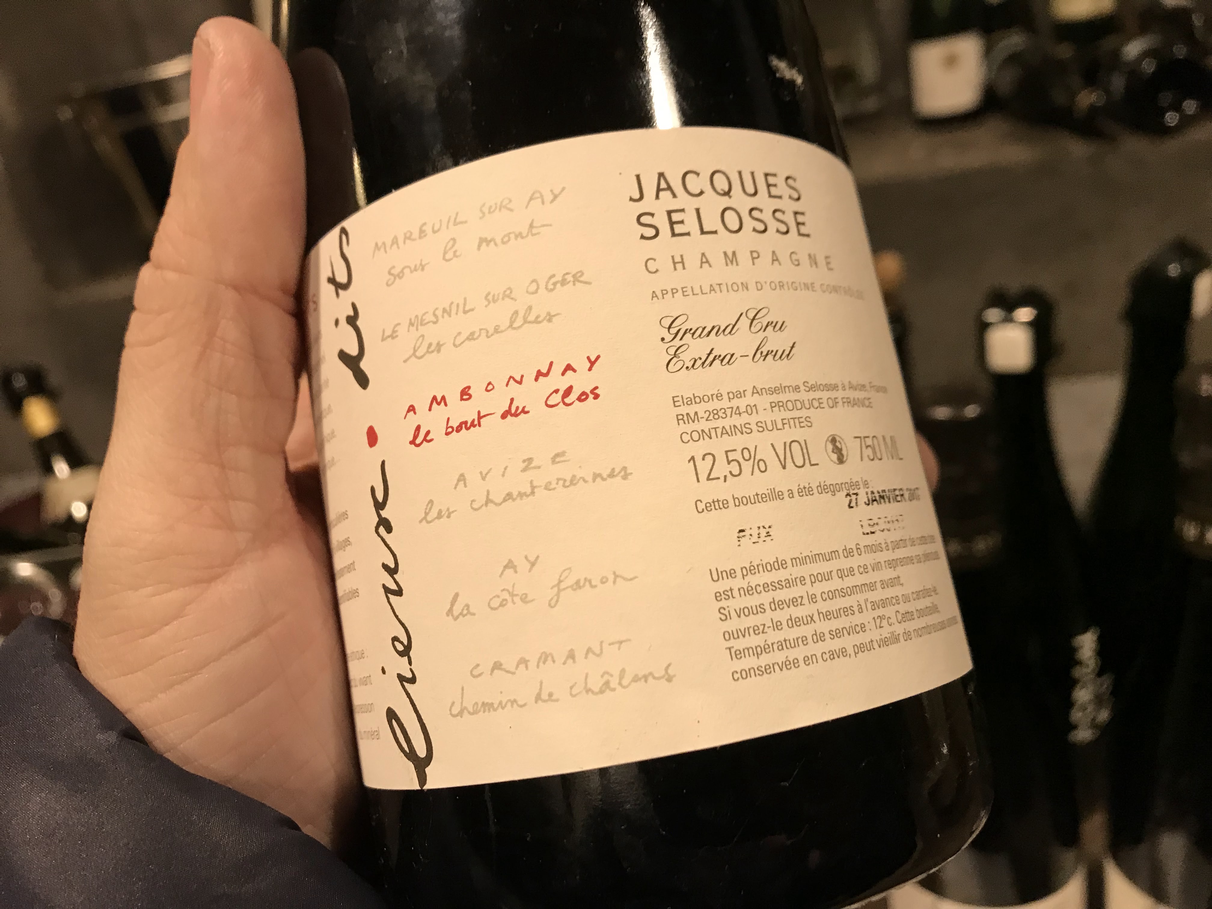 Expérience fantastique commençant par le charmant Selosse 2002 et le dîner dans une chambre et un petit-déjeuner parfaits et se terminant par la dégustation fantastique d'Anselmes. Il est tellement énergique et passionné et produit des champagnes fantastiques. Klas et Sara Waldenfors