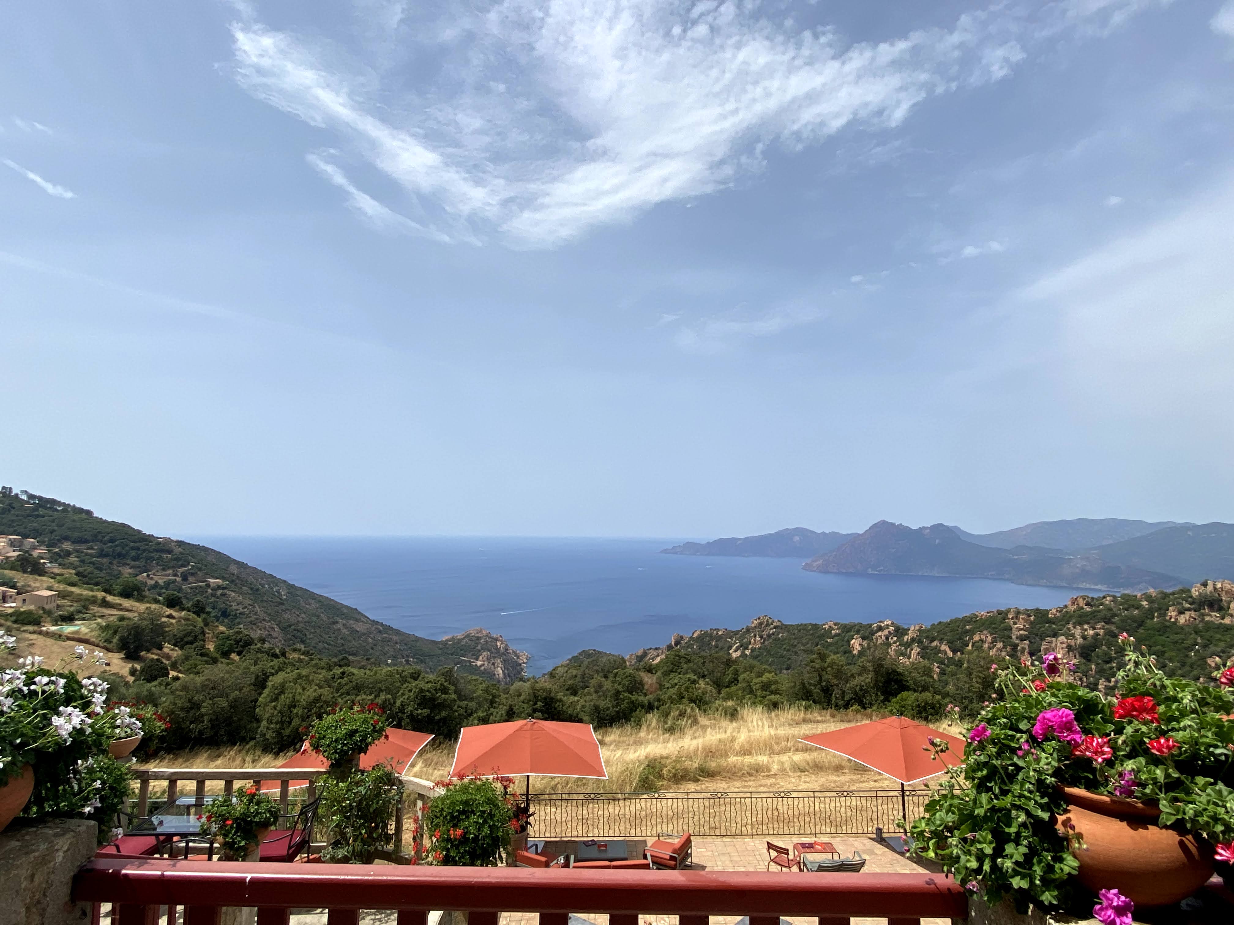 Cela faisait des années que nous passions devant cet hôtel, dégageant à la fois charme et mystère, en nous disant qu'il faudrait y aller un jour. Si la façade côté route donne une impression d'hôtel vieillot, la magie opère dès qu'on arrive devant l'entrée. On a l'impression de se retrouver au début du siècle dernier, à la Belle Epoque, avant d'avoir le souffle coupé face à la vue depuis la terrasse. Le golfe de Porto et les calanches de Piana s'offrent à votre regard. Que dire du restaurant et des plats savoureux, de l'excellente cave et de la bienveillance de Mady, la propriétaire des lieux ? Que du bien !!! A noter peut-être un petit rafraichissement des chambres, pour que tout soit parfait comme dans un rêve. Il faut prendre un chambre côté mer, le spectacle au coucher de soleil et au réveil est mémorable.