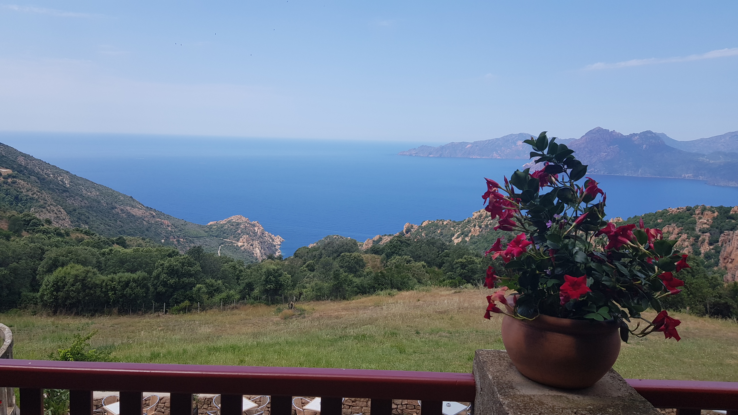 Beauté du paysage et belle vue sur le golf de Porto et Girolata, bon accueil, très bon restaurant