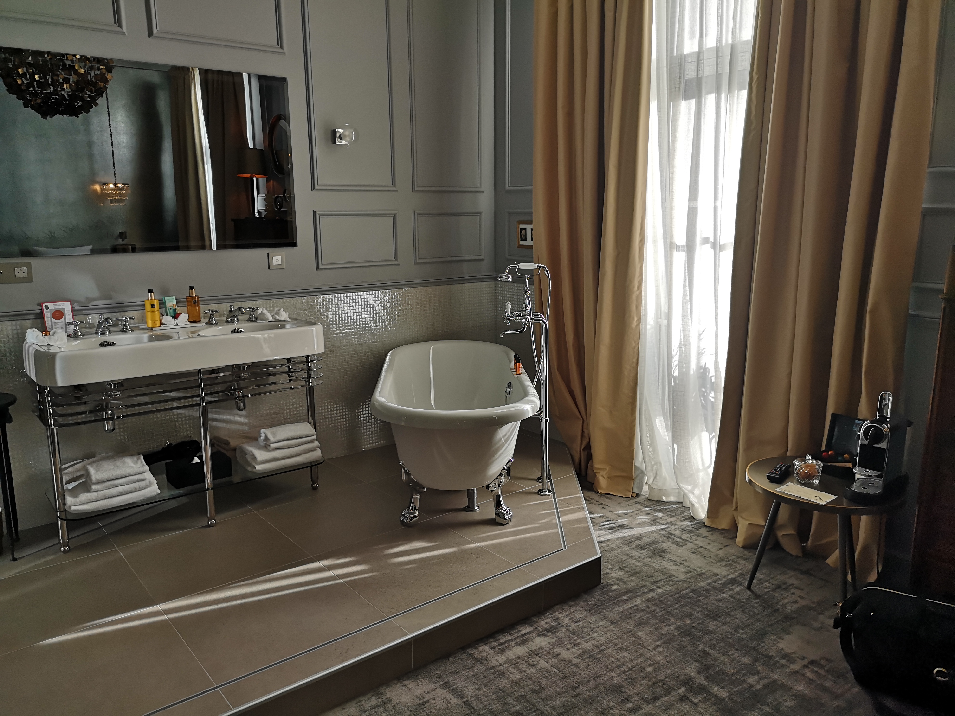 Le personnel est vraiment très gentil, serviable et à l’écoute. La qualité du petit déjeuner est très bonne. Le bémol est que j’ai du prolonger min séjour, j’ai du changer de chambre. Il n’y avait qu’une chambre supérieure disponible. J’ai payé plus cher avec des services en moins : pas de peignoir pas de chaussons pas de mini bar. Je n’ai pas compris… la 2ème chambre était plus spacieuse que la première, la salle de bain avec baignoire donc pourquoi n’ai-je pas eu les mêmes prestations que dans la première. Cerise sur le gateau, dans la seconde chambre nous avions 1 interrupteur qui commandait toutes les lumières et la TV, donc soit on regardait la TV avec toutes les lumières allumées (même le jour) soit nous étions dans le noir complet et sans TV.