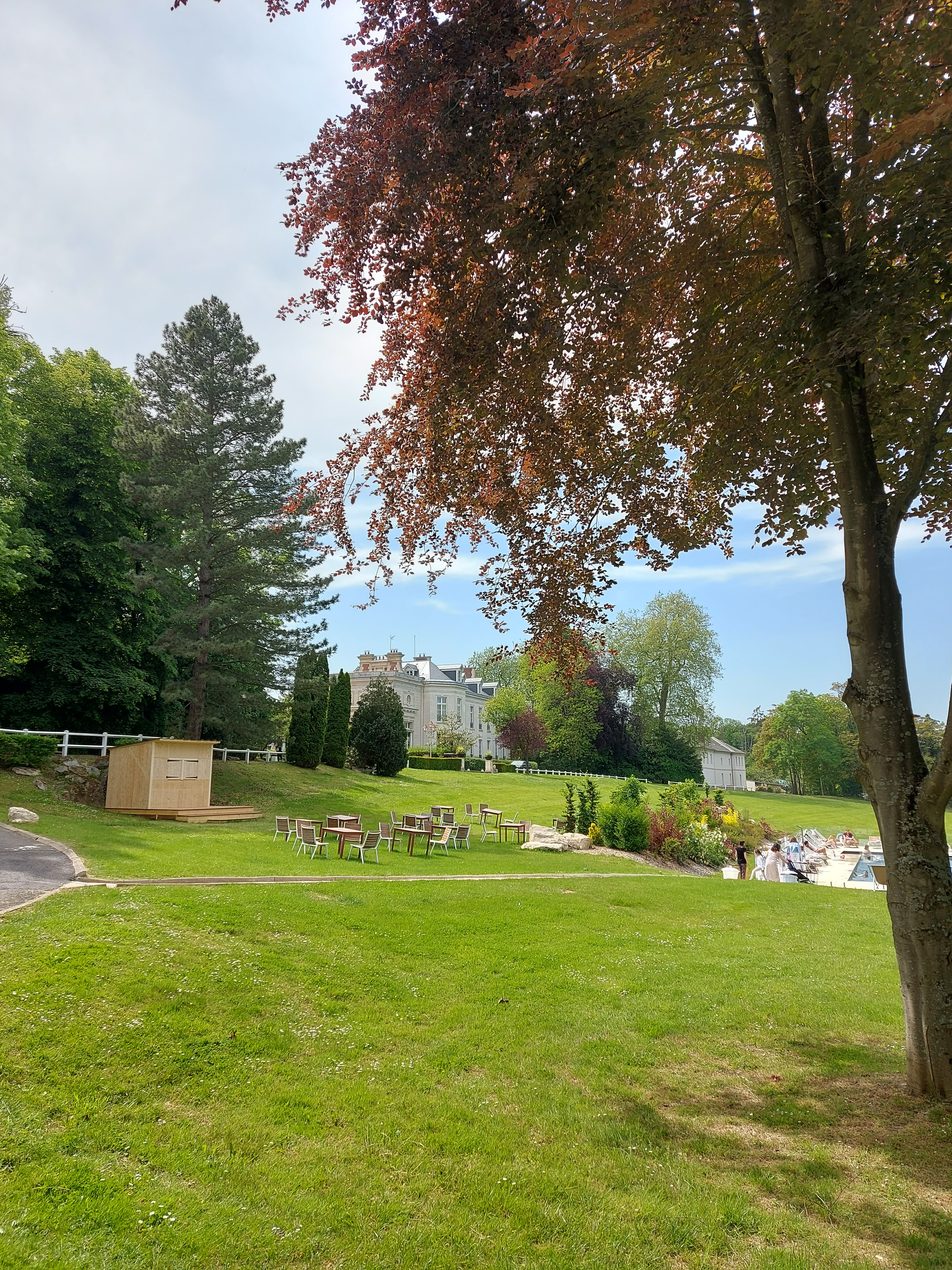 Notre séjour a été parfait et nous sommes repartis de là avec ma femme très satisfaits ! Bien entendu il y'a quelques petits trucs à améliorer : espace bien être très bien pensé mais avec trop peu de transats; il manque aussi peut être un espace hamam vu la taille de l'établissement, ce type d'installation serait top. Le coût de la recharge d'une voiture électrique (forfaitaire - 18€) me semble aussi un peu élevé. Sinon, notre chambre était superbe avec une belle vue. Le diner aussi (à la brasserie du château) inclus dans notre demi-pension était au top ! Nous avons diné à 2 au calme assis dans des fauteuils bien cosy et notre serveur a été très courtois et sympa. Cétait notre premier séjour à 2 depuis plus de 10 ans en couple ! les enfants et l'éloignement des parents obligent. Il nous fallait donc une belle coupure et cela a été le cas. Spécial remerciement aussi pour la qualité et la discrétion apportées à la surprise réalisée à ma femme : le bouquet de roses rouges et blanche étaient parfaits - elle l'a adoré. Et 1 semaine après il est encore debout comme s'il avait été cueilli hier. A bientôt j'espère.